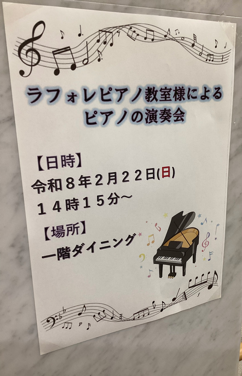 先日、「ラヴィーレレジデンス愛宕」様に訪問演奏に行ってまいりました。